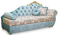 Диван «София». Элегантная рельефная спинка выполнена при помощи техники капитоне и украшена декоративной короной из натурального бука. Дерево – натуральный материал, который хранит энергию, передает тепло и вековые традиции. Изогнутый подлокотник с окантовкой и декоративные подушки различных форм – этот диван совершенен. Стиль дивана «София» можно назвать современным рококо, от классического его отличает отсутствие чрезмерного множества резных деталей. Он украсит Ваш интерьер, станет его основой. Правильно подобранный текстиль подчеркнет особенную декоративность и неповторимые формы. По Вашему желанию Диван «София» можно выполнить с правым или левым разворотом, а так же выбрать цвет дерева, подходящий под Ваш дизайн. Прочный и удобный механизм трансформации «дельфин», обеспечивает ровное и просторное спальное место для 1 или 2 человек.