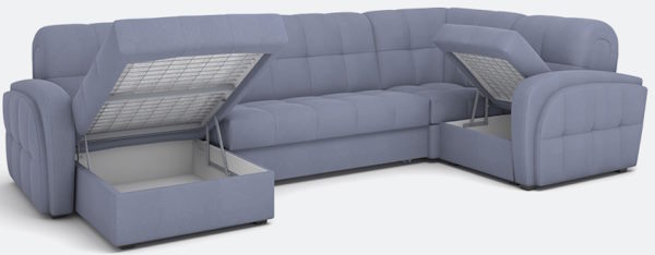 Простая, но стильная строчка, помимо декоративной функции выполняет и практическую: предотвращается преждевременная деформация обивочной ткани, а также достигается дополнительная пышность чехла.В угловой секции Блэквуда размещён пуф, который легко достаётся, а образовавшуюся нишу под ним можно использовать, как дополнительное место хранения. Угол универсальный (можно менять местами, не прибегая к помощи специалистов).