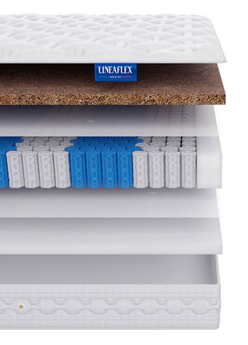 Благодаря мягкому соединению пружин, матрас Debora с легкостью подстраивается под контуры человеческой фигуры и этим обеспечивает наиболее комфортный отдых. Содержание латексированной кокосовой койры в наполнителе гарантирует эластичность и хорошую воздухопроходимость. В комплекте поставляется чехол из хлопкового жаккарда (20% хлопка). Стежка выполнена из экологичного файбера.