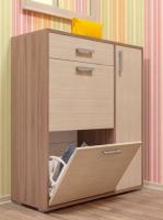 Обувница – ОБ-1 компактна и вместительна. Занимая меньше метра в длину, она вмещает до 20 пар обуви. При этом их можно разместить как в специальных секциях с откидными дверцами, так и на полках. Удобным дополнением станет выдвижной ящик в верхней части обувницы. Здесь могут храниться ключи, перчатки и прочие мелочи, которые теряются в самый нужный момент. Благодаря цветовому разнообразию, обувница впишется в любой интерьер, защитит вашу обувь от пыли и разгрузит прихожую. Также ОБ-1 можно компоновать с элементами мебельного комплекта «Рассвет».